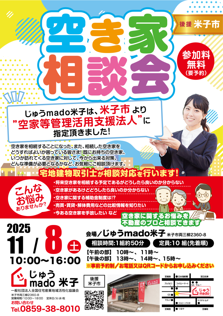 じゅうmado米子にて、空き家相談会を開催いたします。